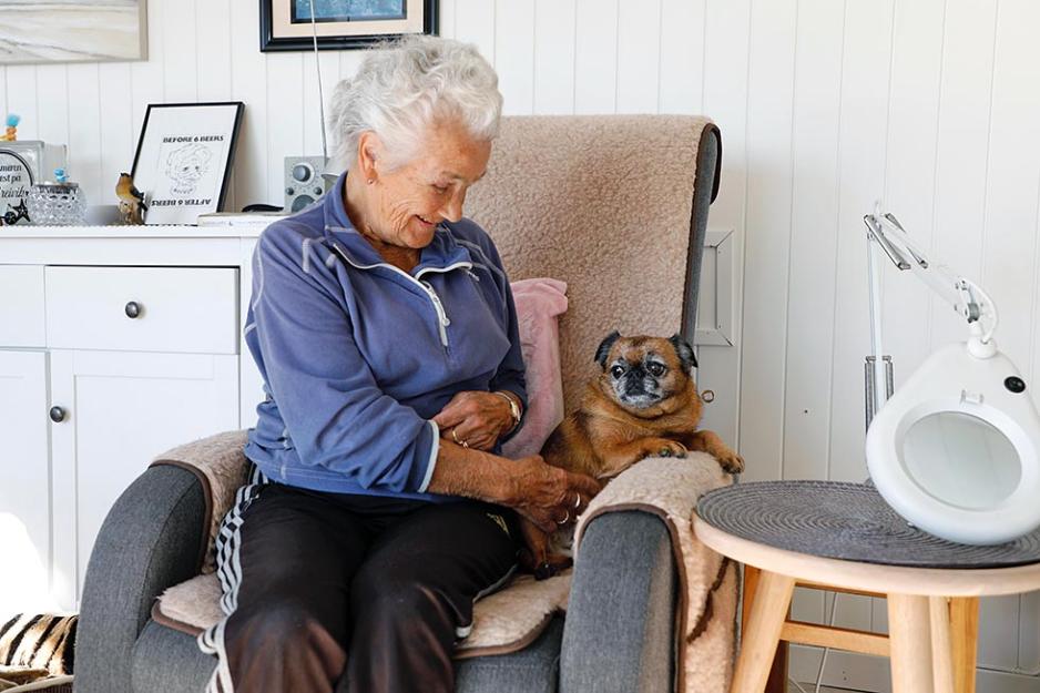 Nancy Langseth fra Kristiansand er 89 år og fast gjest på Breivik Camping. Første besøket på campingen var i telt i 1961, da var hun her for å fiske. Nå brukes plassen til avslapping, selv om det er mye å drive på med. Her er utallige blomster som trenger vann, og rett som det er kommer et barnebarn innom for besøk. Åmor har fire barnebarn, en sønn og en svigerdatter på samme plassen.