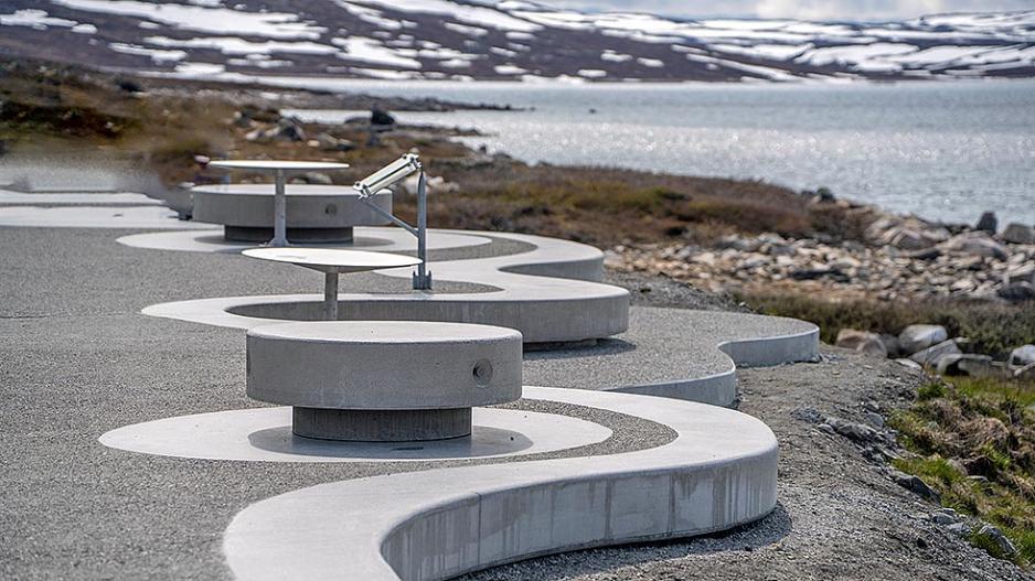 - Betongkragen er rettlinja og stram inn mot veganlegget, og buktar seg i ei organisk mjuk linje ut mot det naturlege landskapet og skaper varierte og unike små tilhaldsstader, seier han.