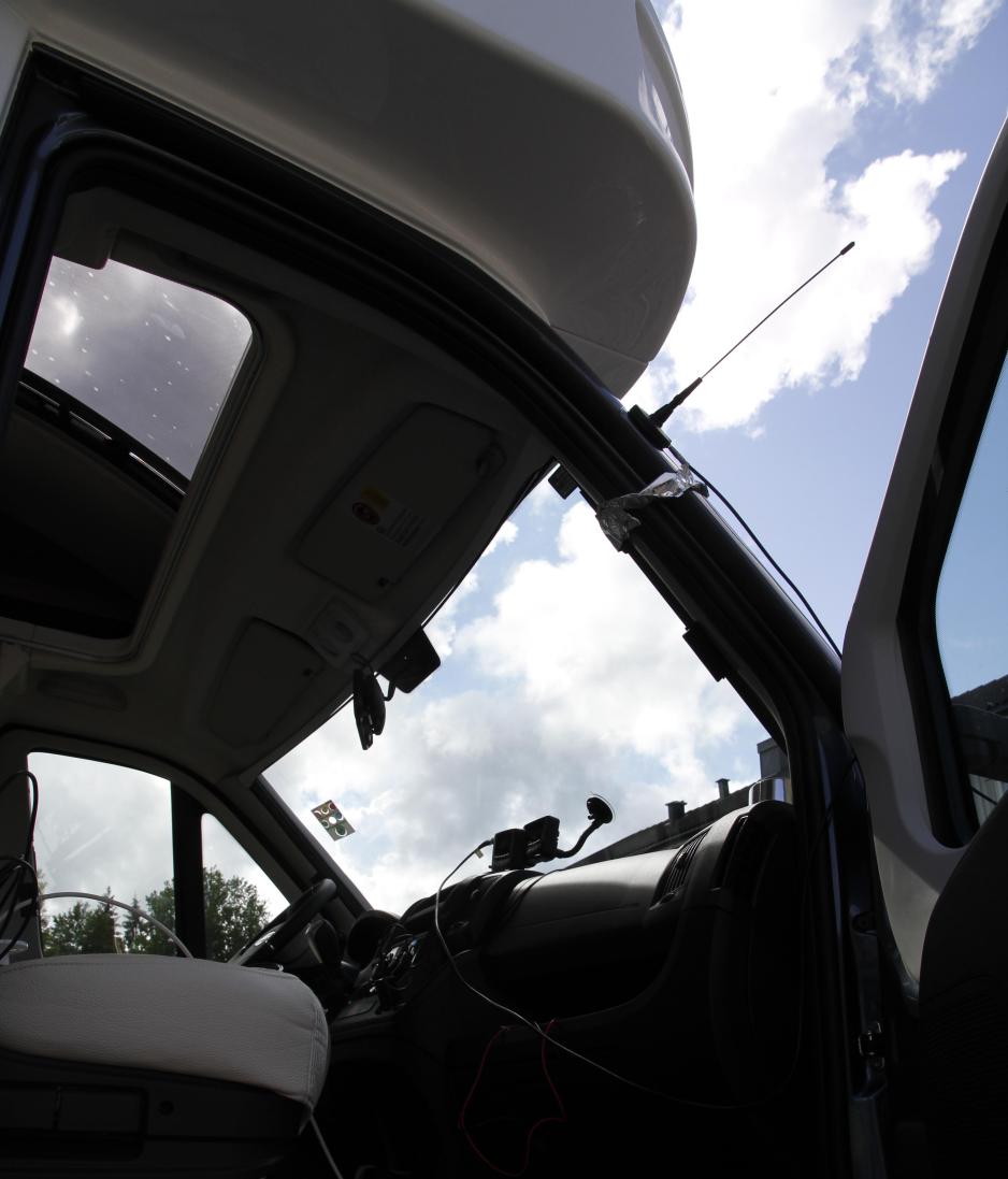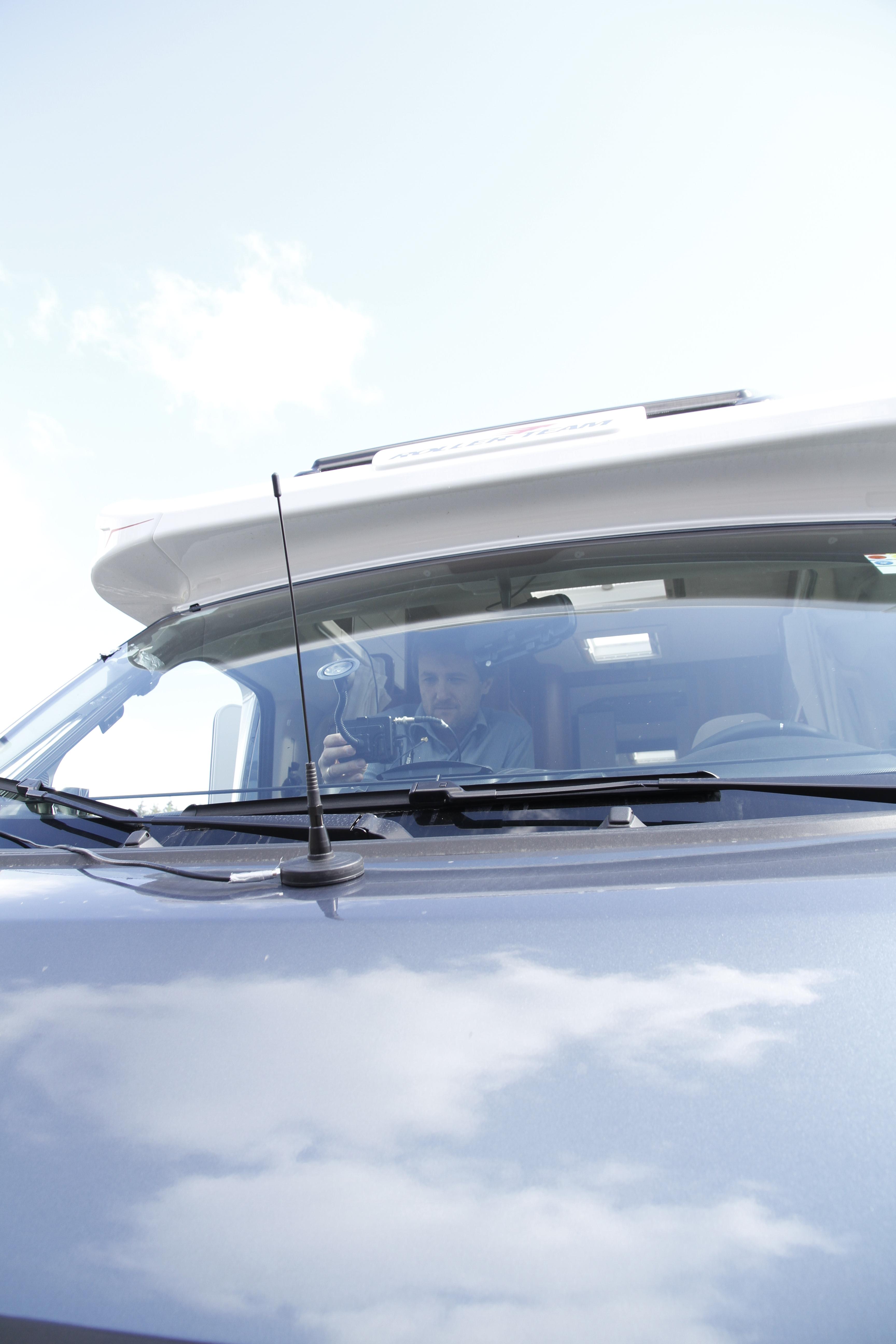 • Glassantennen Alpine KAE-220DA montert på frontruten: Bedre mottak enn på dekningskartet. Husk å jorde antennen, noe som er lett å gjøre på en halvintegrert bobil, mer jobb på en helintegrert bobil med glassfiberfront. Vær klar over at mottaksforholdene vil variere med kjøreretning, særlig om du kjører bobil med vegger av aluminium.