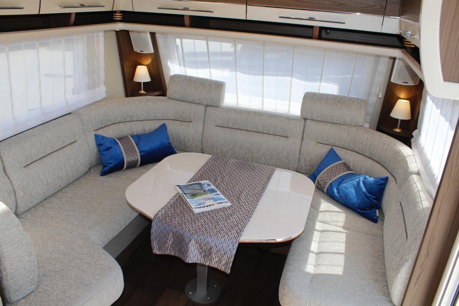 – Selv om retrotrenden er spennende og visuell, så blir det i første omgang premium-modellen Nova S som blir å se på utstilling hos norske forhandlere, forteller Rudi Fimpel. Han forventer seg økte markedsandeler også i Norge. Nova S er vognen for to voksne som ønsker seg alt av luksus. Det er selvfølgelig mulig å bo 4-5 personer her også, men modellen har ingen ”barneavdeling” og er innredet primært for voksne. Det er masse plass til venner rundt en romslig rundsittegruppe bakerst, i tillegg til en hyggelig sitteplass i midten av vogna, som Eriba kaller for lounge. Kjøkkenet er stilrent og moderne med høyglans hvite fronter, gode kokemuligheter og fin belysning. Belysningen i hele vognen er naturligvis LED, og fremstår diskré og moderne. Av praktiske detaljer kan vi nevne gitter-skuffen som utnytter varme fra Aldes vannbårne system, og som er plassert i skapet ved siden av kjøleskapet. Eriba har også en unik list innvendig langs veggene hvor alle rør og ledninger er strukket. Dette gjør lagringsmulighetene bedre, og gir et ryddigere inntrykk.