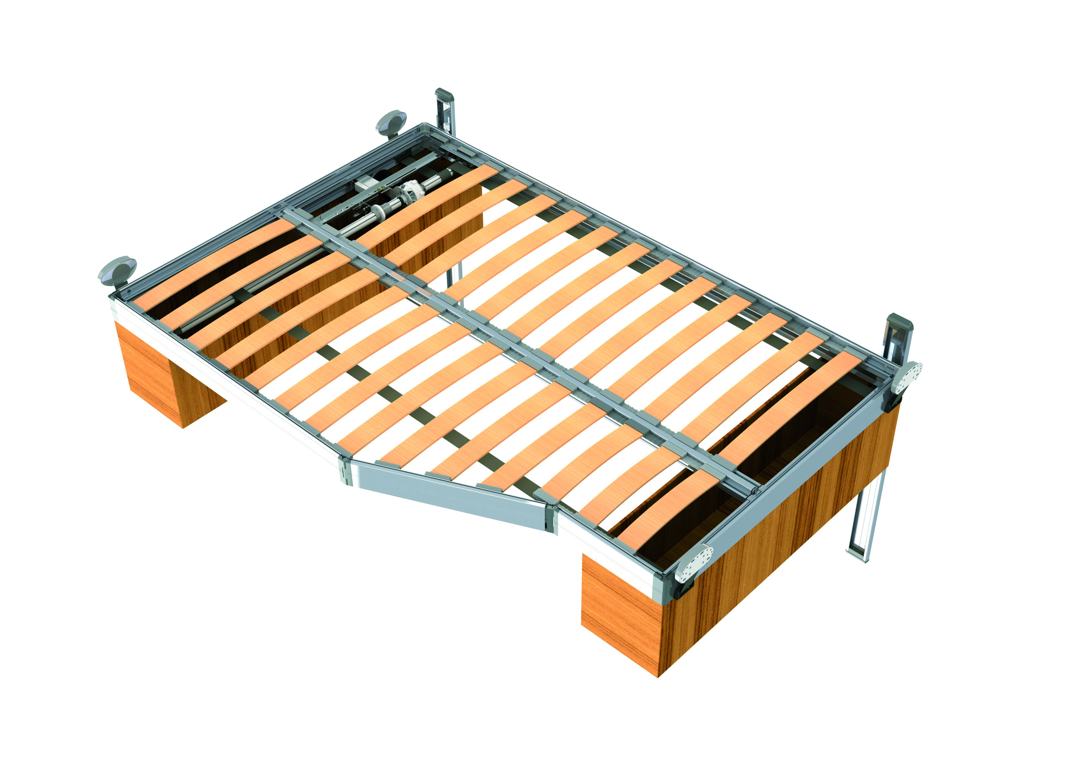 Nå skal det sies at sengen er utviklet for salg om montering på fabrikknye bobiler, og da sørger produsenten for at den økte høyden under sengen - når den står i øverste posisjon, utnyttes for å skaffe plass til sykler i garasjen - for eksempel.