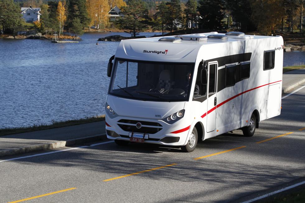 | Tekniske data Sunlight I 69 L Grunnpris: 749 000 kroner Vist bil: 842 400 kroner Basisbil: Fiat Ducato Motor: 2,3 ltr. 130 hk Gir: 6 manuell Chassis: Originalt lavt Akselavstand: 403 cm Utv. mål: 743 x 233 x h 294 cm Totalvekt: 3495 (alt. 3850) kg Egenvekt: 3100 kg Nyttelast: 395 kg Seng bak: 195 x 148 (180 x 148) cm Senkeseng: 195 x 150 cm Toalettrom: 73 x 83 x h 193 cm Dusj: 76 x 58 x h 202 cm Kjøkkenbenk: 95 x 57/92 x h 94 cm Kjøleskap: Thetford 167 ltr. brutto, 29 ltr. frys Varme: Truma Combi 6 EH Vannvarmer: Integrert Vanntank: 122 ltr. Spillvannstank: 92 ltr. Toalett: Thetford C260 Garasje: 216 x 123/76 x h 98 cm Gass: 2 x 11 kg Bobatteri: 95 Ah Reg for: 4 personer Div: 4 vinduer, 6 takluker Takk til Mysen Caravan for lån av testbil. |