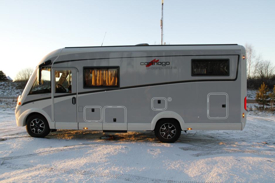 | Tekniske data Carthago Compactline I 143 Grunnpris: 1 070 000 kroner Vist bil: 1 182 500 kroner Basisbil: Fiat Ducato Motor: 2,3 ltr. 150 hk Gir: Automatgir, 6 trinns Chassis: AL-KO lavt, lett Akselavstand: 380 cm Utv. mål: 694 x 212 x h 289 cm Totalvekt: 3 500 kg Vekt kjøreklar: 2 925 kg Nyttelast: 575 kg Senger bak: 198 x 79 + 185 x 79 cm Senkeseng: 178 x 155 cm Toalettrom: 111 x 66/86 x h 187 cm Dusj: 66 x 60 x h 190 cm Kjøkkenbenk: 100 x 50 x h 93 cm Kjøleskap: Dometic RML 9335 130 ltr, hvorav 12 ltr. frys Varme: Truma Combi 6 EH m/elvarme Vannvarmer: Integrert Vanntank: 120 ltr. Spillvannstank: 90 ltr. Toalett: Thetford C 260 Garasje: 205 x 130 x h 119 cm Gass: 2 x 11 kg Bobatteri: 80 Ah Reg. for: 4 personer Div: 4 vinduer, 4 takluker Takk til Ferda avd. Jessheim for lån av testbobil. |