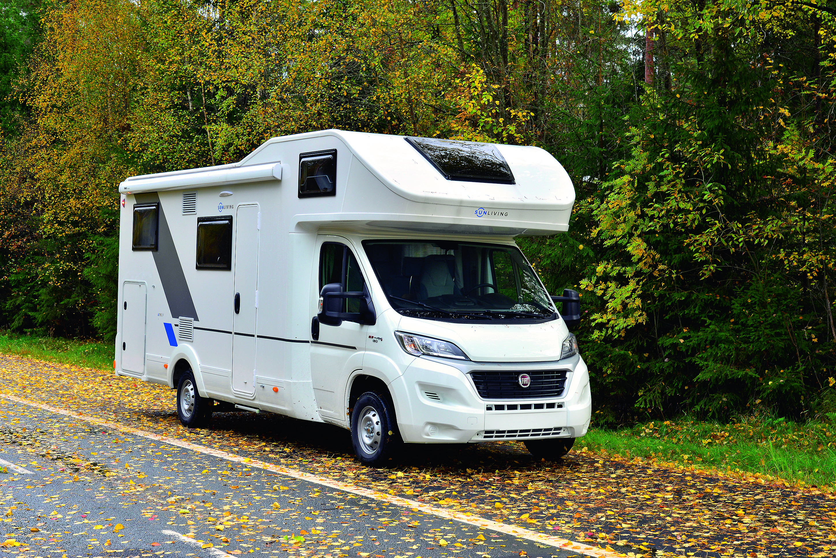 | Sun Living A75DP Produksjonsland: Slovenia Chassis: Fiat Camper Motor: 2,3 MJ, 130 HK Dreiemoment: 320 Nm Girkasse: 6 trinns manuell kasse Totalvekt: 3500/3650/4400 kilo Nyttelast (fabrikkens tall): 564/714/1364 kg (uten ekstrautstyr) Størrelse (lxbxh): 740x232x308 cm Drivstofftank: 90 liter Vanntank: 90 liter Gråvannstank: 85 liter Utstyr: Doble airbags, ABS-bremser, cruisecontrol, elektriske vindusheiser, aircondition, Truma Combi 6 med elkassett, kjøleskap med fryser, gass-kokebluss, isolert og oppvarmet spillvannstank, gulvvarme 230V, myggnetting til dør. Antall godkjente sitteplasser: 6 Pris fra: 769 900 kr. En rask sjekk hos norske forhandlere viser at det er tatt inn en god del av denne alkovemodellen - så dette er en modell som det burde være gode muligheter for å ta i øyesyn hos flere lokale forhandlere. |