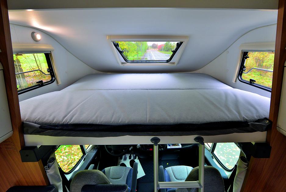 Jeg har valgt å teste alkovemodellen med tverrstilt dobbeltseng bak. Dette er en utgave som fungerer godt for bobil-utleiefirmaer og barnefamilier. Motoren i testbilen er på 130 hk og Fiats 6-trinns manuelle girkasse. En utprøvd drivlinje som gjør en god jobb. Var jeg kjøperen av denne bobilen ville jeg likevel valgt den noe sterkere 150 hk-versjonen av samme motor. Den har et betydelig høyere dreiemoment, noe som kommer godt med når fire personer og feriebagasje skal ut på veien.