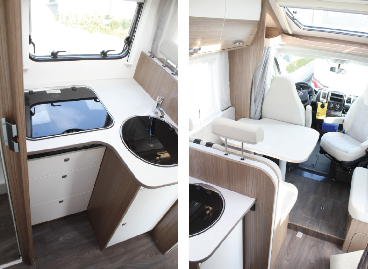 T/I 447 har enkeltsenger bak, T/I 449 har midtstilt dobbeltseng. Alt i alt en solid, tysk bobil med god valuta for pengene. Carado har også bybobilen Vlow, som nå også fås i en mer påkostet utgave gjennom Vlow Unlimited.