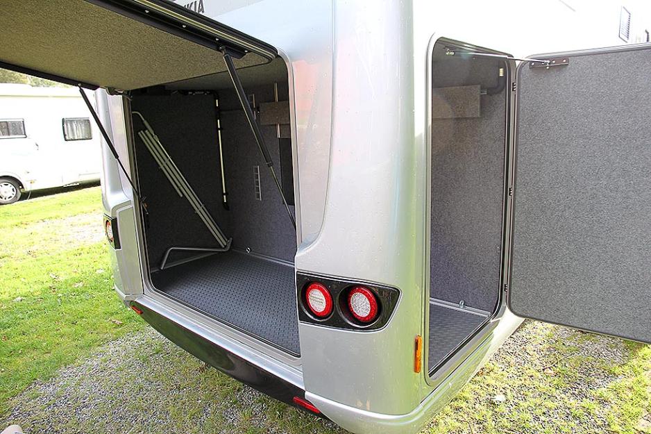 Garasjen har ved første øyekast kun én stor dør. Men det stemmer ikke, da det på typisk Frankia-vis er mulig å åpne en stor luke i bakveggen. Det gir lett adkomst til hele det romslige rommet. Hele konstruksjonen av bodelen er trefri.
