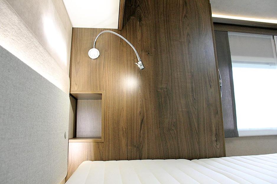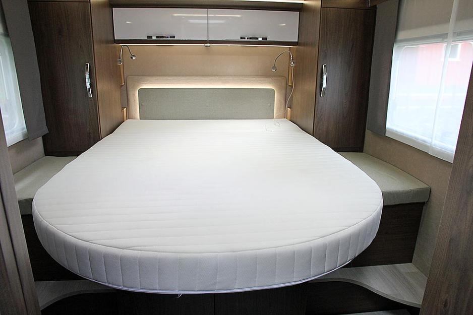 Platin 8400 kommer i to utgaver: GD og QD. Førstnevnte er enkeltsenger, mens QD (som er vår testmodell) har en frittstående dobbeltseng. Løsningene på de to søstermodellene er ikke helt like. Dusj og bad har byttet side, og det er et ekstra skap på utgaven med enkeltsenger, siden det ikke trengs like mye plass ved fotenden her som en dobbeltseng krever.
