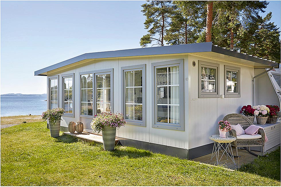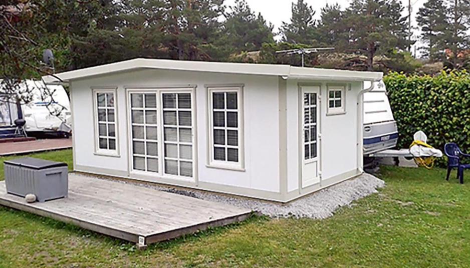 Annet: Kan leveres med knekte hjørner (karnapper), bod/inngangsparti, takoverbygg, hel bakvegg mot vogn, sprosser. En nyhet for 2017 er at karmer til vinduer og dører er isolert innvendig i pir-skum.