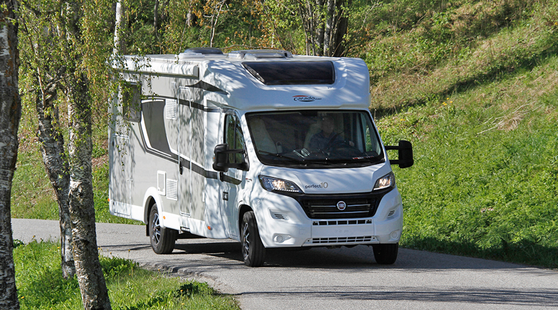 | Carado T 447 Perfect 10 Pris vist bil: 825 000 kroner Basisbil: Fiat Ducato Motor: 2,3 ltr. 150 hk Gir: Automatgir Chassis: Originalt Fiat, lavt med bred sporvidde bak Akselavstand: 404 cm Utv. mål: 743 x 233 x h 291 cm Totalvekt: 3,5 tonn Kjøreklar vekt: 2 895 kg Nyttelast: 605 kg Tilhenger: 2 000 kg Senger bak: 210 + 205 x 80 cm Senkeseng: 192 x 140/110 cm Toalettrom: 82 x 72 x h 190 cm Dusj: 57 x 77 x h 200 cm Kjøkkenbenk: 95 x 56/92 x h 94 cm Kjøleskap: Thetford N3170, 160 ltr. 30 ltr. frys Varme: Truma Combi EH Vannvarmer: Integrert 10 ltr. Vanntank: 122 ltr. Spillvannstank: 92 ltr. Toalett: Thetford C 260 Garasje: 215 x 116/101 x h 119 cm Gass: 2 x 11 kg Bobatteri: 95 Ah Reg. for: 4 personer Div: Fire vinduer, fem takluker, ett takvindu |