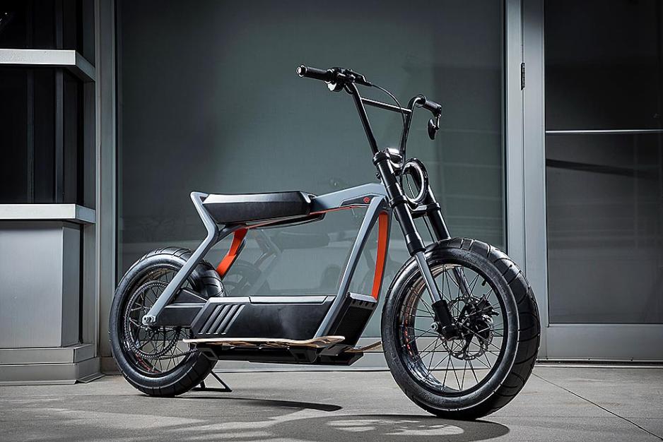 Mer garasjeromsvennlig for bobilbrukere er konseptmodellene som utvikles parallelt fra Harleys nye utviklingsanlegg i Silicon Valley. Foreløpig vises det frem bilder av en prototype på en elektrisk bymoped. Her er det ingen clutch eller gir, den er lett og skal ikke kreve mer enn «mopedlappen» av fører. Batteriet kan enkelt fjernes og bæres med en hånd, samtidig som designen har H-Ds særegenheter, står det å lese i pressemeldingen. Designen er uenktelig særpreget og tøff, men vi tør påstå at el-tohjulingen ikke akkurat ser ut som en «Fat Boy», som for øvrig fremdeles produseres av selskapet - heldigvis vil mange si.