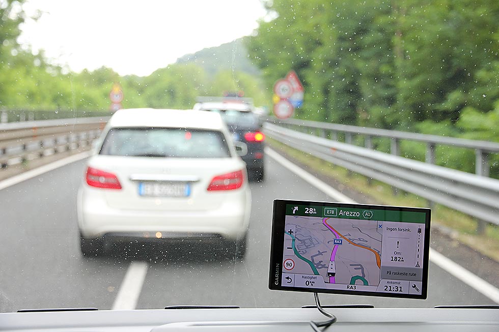 En annen nyttig beskjed er når du har kjørt en lang, sammenhengende etappe. Da kommer det opp et forslag om å ta pause, og det følges opp med forslag til konkrete rasteplasser. Stor var min overraskelse da jeg på en av de første turene med GPS-en i sommer kjørte på motorveien nord for Roma og fikk forslag om å ta pause på en av flere restauranter og bensinstasjoner med matservering. Veldig bra!