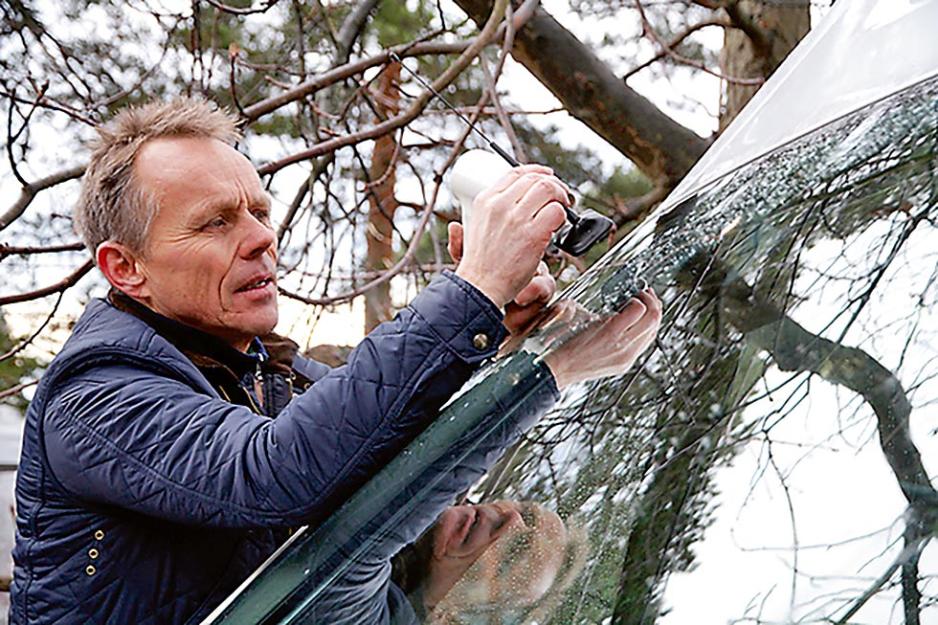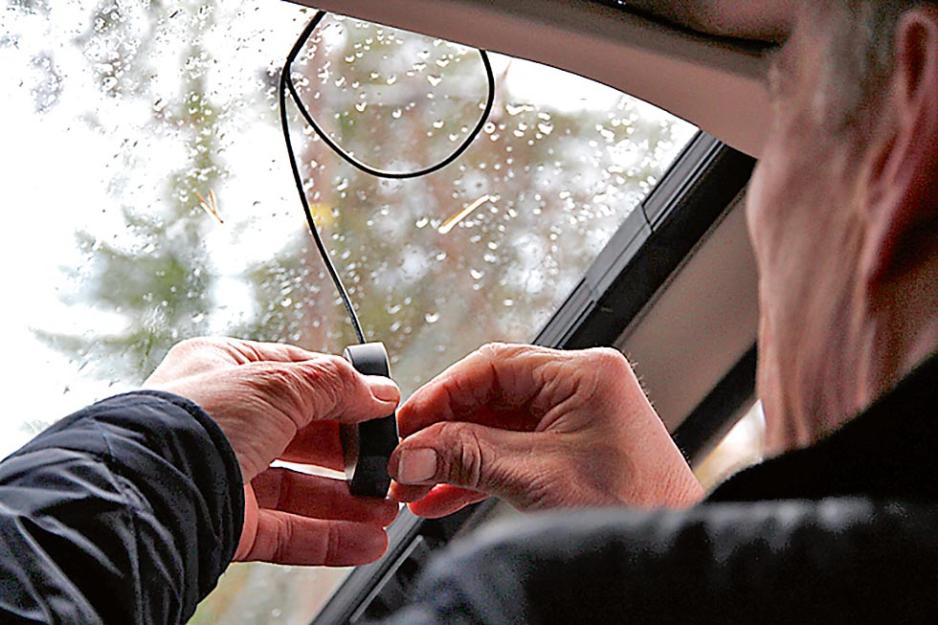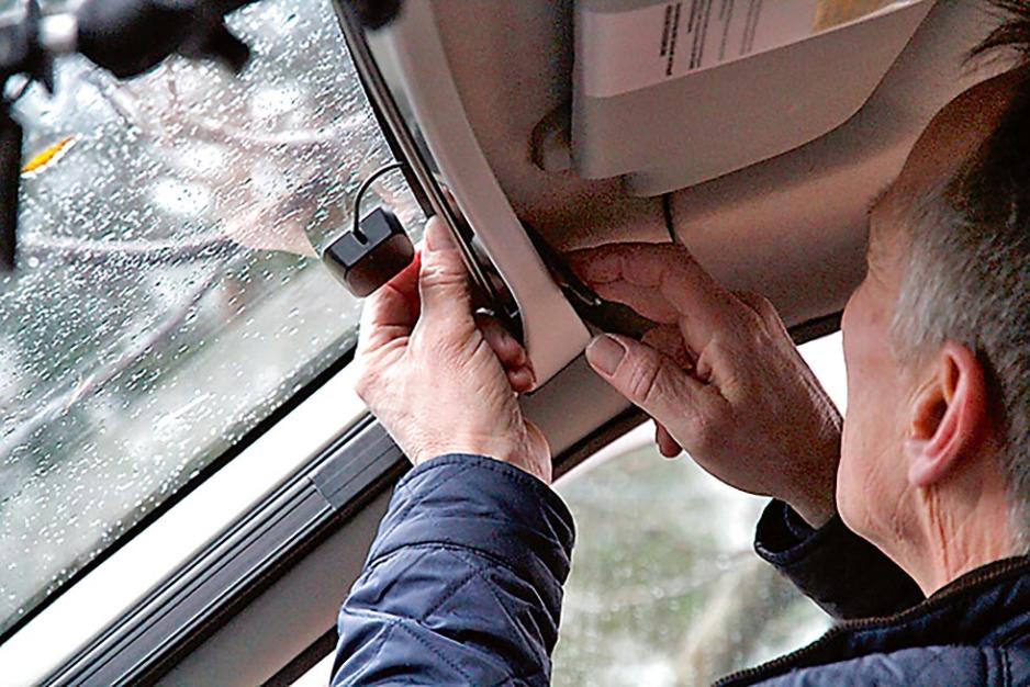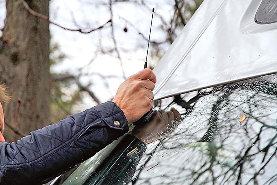 Vi har fått med oss en ekspert til å montere anlegget. Tore Vedvik er key accountmanager i firmaet TT Micro. Tittelen antyder at han håndterer kunder og selgerprodukter, men Tore er også en praktisk mann som blant annet har gjort utalligeinstallasjoner og tester av DAB-utstyr. Tore velger en induksjonsantenne for å få så enkel montering som mulig. Antennen meden pisk plasseres utvendig øverst på frontruten, med en mottaker på innsiden av ruten. Disse kommuniserer trådløst og du slipper dermed å ta hull i bilens karosseri. En klebeantenne er ikke noe godt alternativ på en bobil som denne. Det er på grunn av mye metall som vil stoppe radiosignalene om antennen plasseres på frontruten. Man kan faktisk ende opp med en løsning hvor du får gode forhold når du kjører til et sted, mens du på returen ikke får inn signaler i det hele tatt. Spørsmålet er om pisken er lang nok, eller om antennen i vårt tilfelle må opp på taket forå få optimalt mottak fra sendere på alle kanter av bilen.