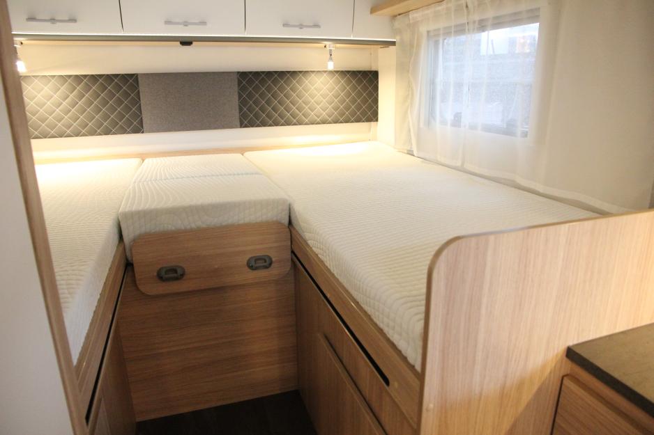 Med den integrerte 2020-modellen i67S har Sunlight skapt en bobil med en megastor seng i hver ende. Hovedsengen er i utgangspunktet to (høye) enkeltsenger, men mellomlegget bygger hele veien og du ender opp med en tilnærmet kvadratisk, massiv seng.