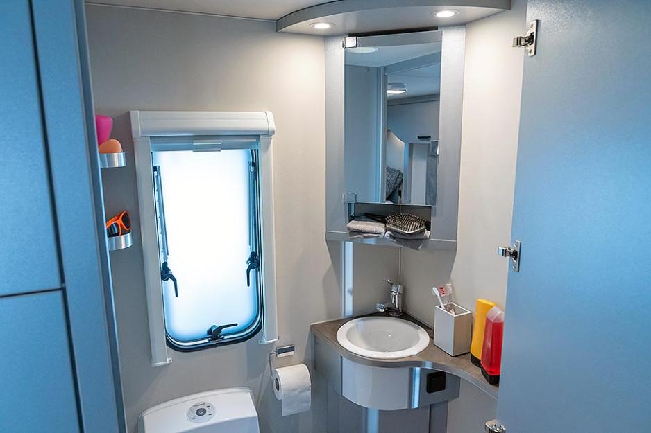 Interiøret kalles Grey Stripes, og her det unike fargedetaljer i sittegruppen og fôret på bakdøren. Dette er en vogn med en stor bakdør i tillegg til den tradisjonelle inngangsdøren, noe som gir mulighet for enkelt å laste en motorsykkel, et par sykler eller et surfebrett.