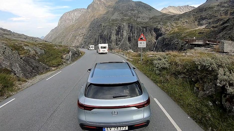 Og for noen lære- og minnerike dager det ble, med Dalsnibba, Geiranger, Ørnevegen, Trollstigen og Atlanterhavsveien. 1381 kilometer på tre dager. Vi anbefaler imidlertid at du som turist tar deg bedre tid enn vi gjorde her. Testen handler mest om hvordan de tre bilene leverte som trekkvogner, den relative forskjellen i strømforbruk mot normaldrift og hvordan infrastruktur påvirker en slik tur.