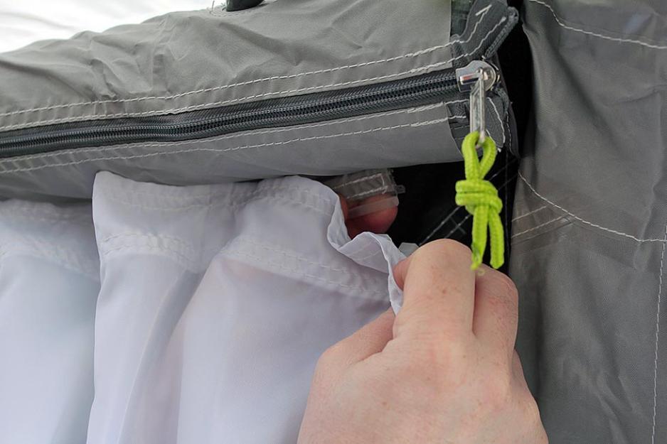 Vår stoppeklokke viste at det tok to minutter å tre teltet inn på skinnen, og førti sekunder å blåse opp teltet med kun 30 pumpetak. Hele monteringen er unnagjort på kun tre minutter. Men så må du regne med noen minutter på å få teltet tett inn mot veggen med stenger, samt sette inn noen teltplugger. Kampa er det raskeste av de tre teltene, og får et minutt kortere tid på monteringen enn Westfield. Men det er i praksis lite som skiller de to forteltene som har en veldig lik konstruksjon.