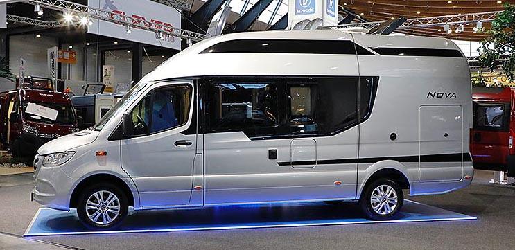 Etter at Ferda sa fra seg agenturet i høst, har La Strada ikke vært representert i Norge,. Men den tyske premiumprodusenten regner med å være på plass igjen i løpet av kort tid. På CMT kunne La Strada slippe sin store nyhet: Nova EB. Rundt fem millioner kroner skal produsenten ha investert i utviklingen av denne sju meter lange, bakhjulsdrevne modellen på Sprinter-chassis. Bodelen er egenutviklet, og helstøpt! Det vil si at man slipper de tradisjonelle overgangene mellom vegger og tak. Det gir åpenbare fordeler, som redusert risiko for lekkasje, men har også en ulempe: Prisen. Dette er nemlig en meget kostbar bobil. Når man støper hele påbygget i ett stykke har man mulighet til å være meget kreativ med formen, men La Strada har valgt et relativt konservativt utseende, og bilen oppleves som en mellomting mellom en tradisjonell bobil og en bybobil. Teknisk er det mye imponerende, blant annet kan én fjernkontroll brukes på alt som er av dører og luker, inkludert gasskapet og toalettanken. Dette er en to-personersbobil med enkeltsenger, bad med «sammenleggbar» vask, gode dusjmuligheter og ellers en relativt tradisjonell interiørløsning, inkludert en L-sittegruppe. Bobilen kan også leveres med firehjulstrekk.