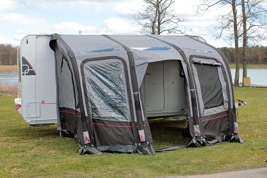 Selve luftstengene er tykkere og har større volum på denne modellen. I tillegg er det hele fire stenger i front. Det gir utslag i flere pumpetak. Likevel tar pumpingen ikke mer enn halvannet minutt. Å tre duken på plass i det noe lengre sporet på vogna tok under tre minutter. Fleksibiliteten til det ferdigmonterte teltet er stor. Det er tre partier i front, hvor du på alle disse kan enten åpne helt, kun ha myggnetting eller dekke til vinduet. Det er dør både i front og på hver side.