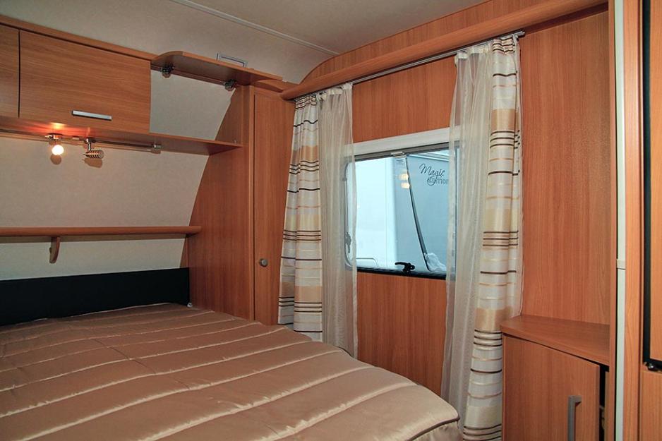 Et uvanlig resultat av interiørløsningen med en frittstående seng er at veggen på begge sider av sengen er utstyrt med et vindu og med LANGE gardiner. Det er et gardinbrett med en liten kant på som kan brukes til pyntegjenstander eller potteplanter når man står rolig, men ikke som fungerer som oppbevaringsplass ved kjøring.