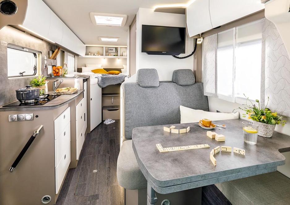 Fjorårets nyhet, halvintegrerte NEO, har fått oppgradert interiør. Den største forskjellen er kjøkkenet, som nå har mer benkeplass og et større kjøleskap, 84 liter som standard, 138 liter som ekstrautstyr.