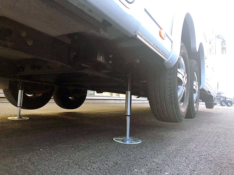 Mange bobileiere drømmer om hydrauliske støttebein på sin bobil. Med et knappetrykk får du automatisk en stødig bobil i vater. Det er en kostnad som merkes godt, men som likevel burde være overkommelig for de fleste om man planlegger og finner riktig løsning. (Se video av veiefunksjonen nederst i denne artikkelen).