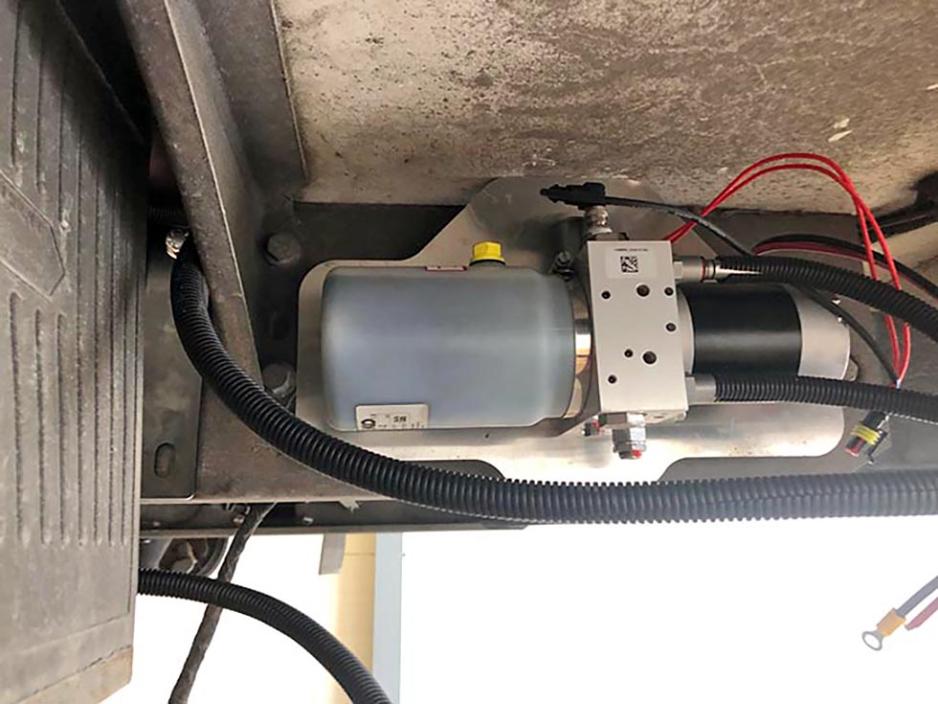 Systemet er unikt i den forstand at det består av fire støttebein med hver sin hydrauliske enhet. Før montering ble disse klargjort. Alle innfestingsenheter ble kontrollert og tilpasset til min spesifikke ramme. Alle sylindre har tre spor for låseringer, som kan regulere løftehøyde ved montering. Disse ble montert i midterste posisjon for å kunne tilpasse høyde mot kjøretøyets gulv samt å ha kontroll på høyde fra veibanen.