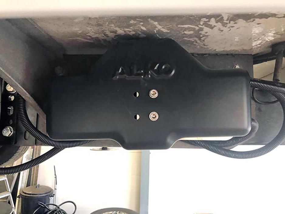 Da HY4 ble montert på bobilen min var ikke AL-KOs løsning for fjernstyring tilgjengelig. Den kom noe senere, og derfor satte jeg kursen mot Tilhengerservice i Skien for andre gang. Montøren hadde på forhånd fått tilsendt alt utstyr for oppkobling av 2Link, som app-løsningen for styring av HY4 heter. Monteringen var langt enklere denne gangen: Bobilen ble løftet opp og en ekstra boks ble montert like ved HY4-kontrollsenteret. Disse ble så koblet sammen, noe som tok en snau time. Ikke bare gjør løsningen det mulig å styre støttebeina med en smarttelefon eller nettbrett, du får også en vektfunksjon.