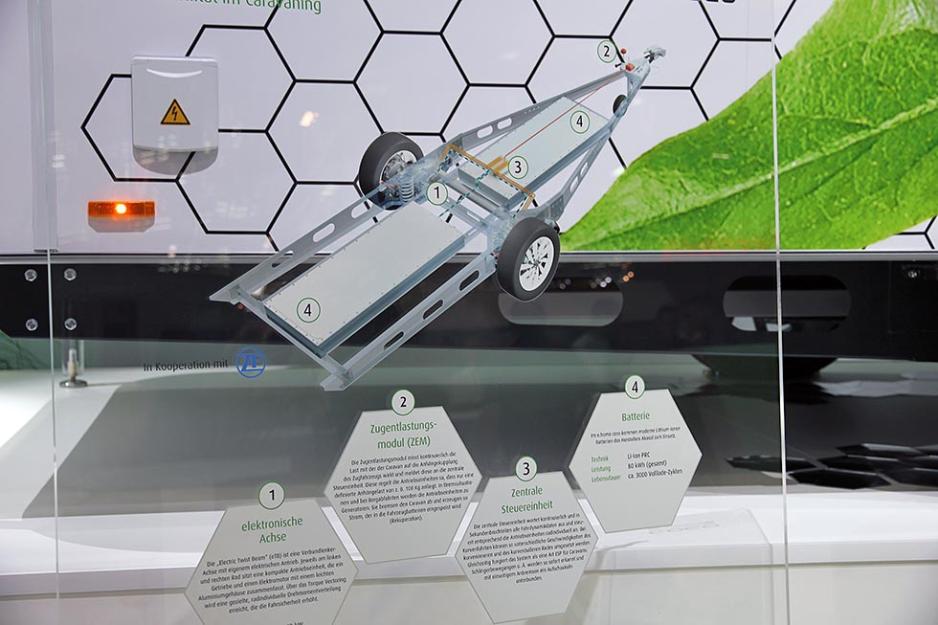 Det unike med denne campingvognen, som har elektrisk drift, er at skulle trekkraften fra bilen overstige hundre kilo, fyrer vogna opp sine to el-motorer. Dermed vil bilen slippe å trekke med mer kraft enn de hundre kiloene, noe som er spesielt viktig på el-biler.