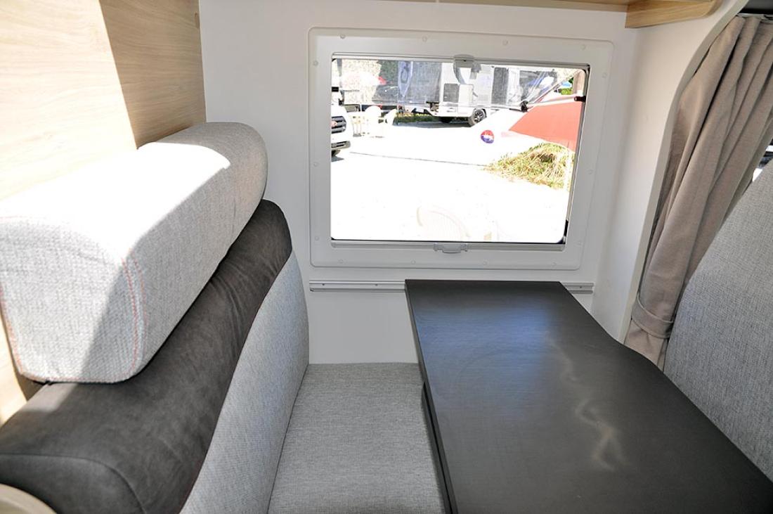 Halvintegrerte Challenger 240 Open Edition er en sju meter lang bobil uten faste senger. Likevel er det soveplasser til fire personer. Over den store sittegruppen, som Challenger kaller for en lounge, er det en romslig senkeseng. De siste to soveplassene rer du opp i sittegruppen. Det er to bokstavelig talt store nyheter ved denne modellen: Den romslige sittegruppen med plass til åtte personer, og: