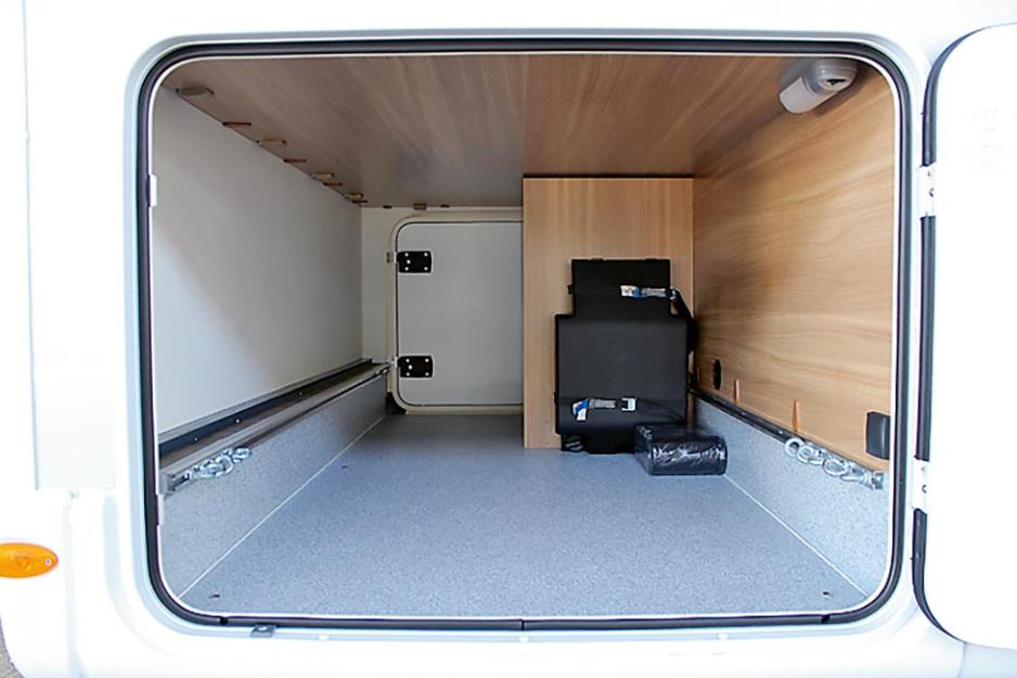 For øvrig et bra påbygg som beskrives i neste avsnitt. Men vi har merket oss at flere produsenter kommer med doble sidevinduer i førerhuset. Det får du ikke her. Bilen kan leveres med høy garasje bak og dermed høye senger med trinn imellom. Da flyttes klesskapene ned under sengene.