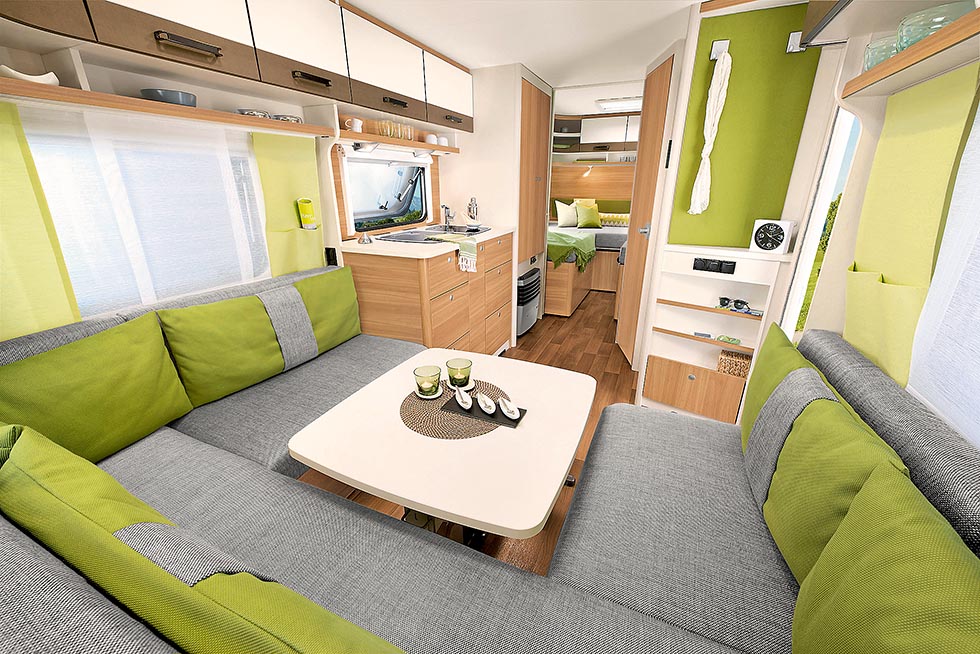 Campingvognserien c’go var tiltenkt ungdommen og traff mange hjemme der, men det viste seg at også de mer voksne falt for dette interiøret. Enklere møbler, hovedsakelig i hvitt, sterke farger i puter og gardiner, men ellers solid og godt utstyrt. Årets nyhet er c’trend, fortsatt med friske farger, selv om de er noe dempet og med finere innredning. En mellomting mellom c’go og Camper både i stil, størrelse og pris. C´trend finnes i fem varianter og lengden varierer fra 5,22 meter til 6,67 meter der den siste, 565FSK i tillegg er 2,5 meter bred. Løsningene er ikke spesielt originale, men slik de fleste ønsker. Det starter med dobbeltseng på tvers i front og romslig firerdinette bak i den minste modellen. Den største har dobbeltseng på langs og toalettrom på siden foran, sittegruppe og kjøkken i midten og barnekøyer bak.