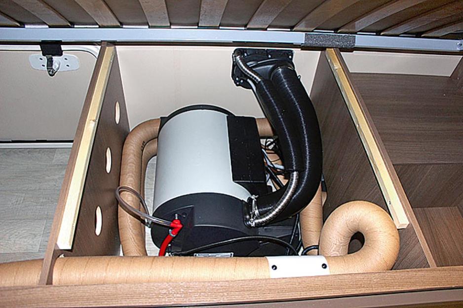 Varmen på Challenger fordeles fra ovnen med fire varmluftsslanger. Kun en av disse er lagt til den fremre delen av bilen. Varmeren ligger under venstre seng bak og det er en kjent sak at luften fort kjøles over noen meters strekning. Framme ved sittegruppen er det to dyser, en i sittegruppen og en vender framover mot førerhuset. Her er stort sett alle bilens kuldebroer samlet og det er her vi oppholder oss i sittegruppen. En rask sjekk viser at det hadde vært en smal sak å føre to av varmeslangene fram til førerhuset og sittegruppen. Å la mesteparten av varmen forbli i bilens bakre halvpart der vi sover, er lite gjennomtenkt. Men dette er detaljer som ikke betyr så mye om bilen kun benyttes i sommerhalvåret. Derimot er Challenger utstyrt med ekstra varme fra motoren bak i bodelen. Adria leveres som standard med gulvvarme.