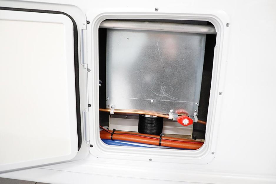 Selv om toalettet har de samme fysiske målene, er installasjonen en del jobb. Forbrenningen er gassdrevet, og ny gasstilførsel må lages. I tillegg skal det på plass et nytt luftinnsug og en «pipe» som må gå over taket. For å få til dette har mekanikerne hos Ferda Mysen fjernet et speil på bakre sidevegg. I tillegg er det bygget en ny kasse til pipa i baderomshjørnet. Et nytt smalere speil vil komme på plass før vogna leveres kunden.