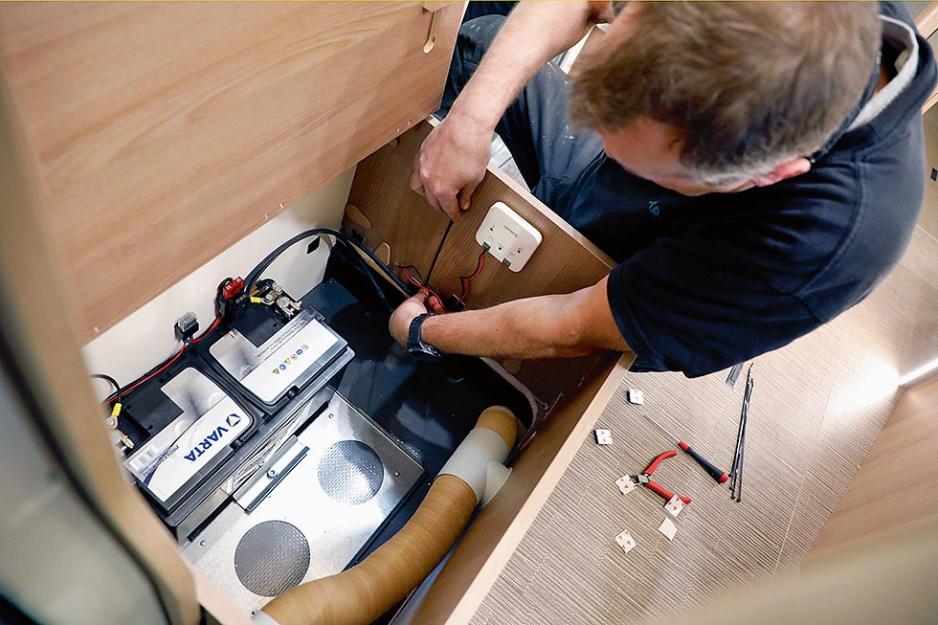 Mekaniker Tor-Arild Olsen har hovedansvaret for monteringen, og han legger mye flid i koblingen av modem og gassensor. Disse står alltid på, og skal derfor være kablet til bilens eller vognas batteri. Egen sikring og merking av denne kommer også på plass. Underveis i monteringen blir det stadig diskusjoner blant Avaras Rudy Steen Johansen og caravanmekanikerne. Blant annet diskuteres det når sirenen skal monteres. Denne har egen batterienhet og er trådløs, og kan dermed lett plasseres på de mest (for tyven?) utenkelige steder. Skal den monteres i motorrommet, bak kjøleskapgitteret eller innvendig? Mulighetene er mange. I dette tilfelle fikk eier siste ord, og alarmen ble montert innvendig. Alle var enige i at det gir best effekt ved innbrudd. Nå er det viktig å poengtere at sirenen kun brukes ved innbruddsalarm. Nattalarmen, eller skallsikringen, benytter ikke den meget kraftige sirenen om alarmen går.