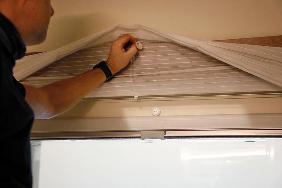 Modellen har vindu på bakveggen. Ved å løfte litt på gardinene finner man raskt en diskret plassering for en sensor også her.