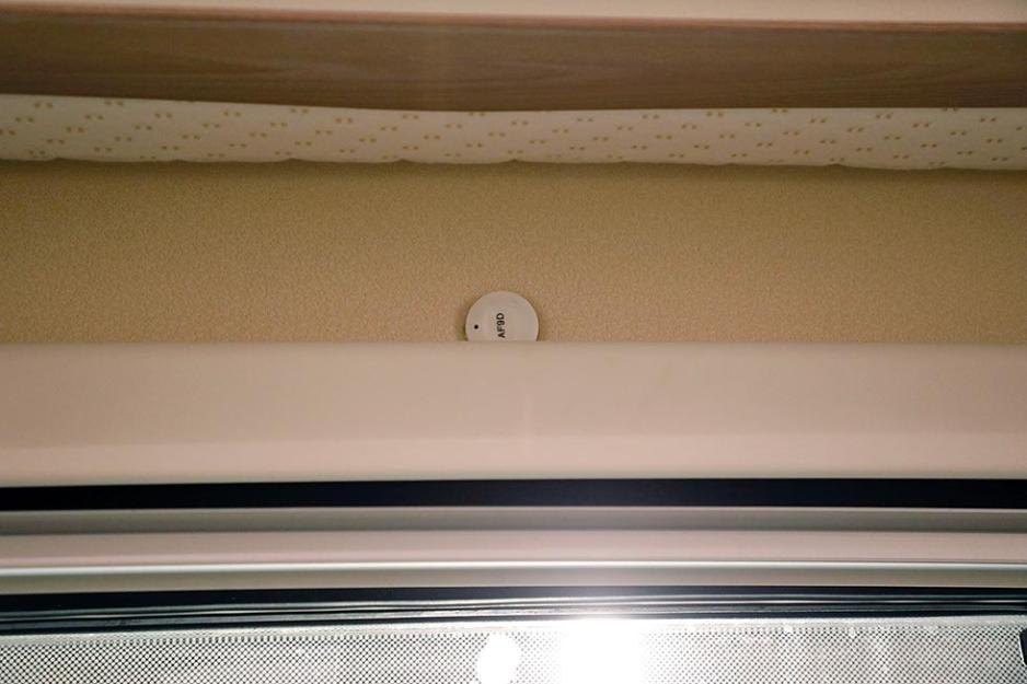 Diskret plassering av sensoren i overkant av det store takvinduet.