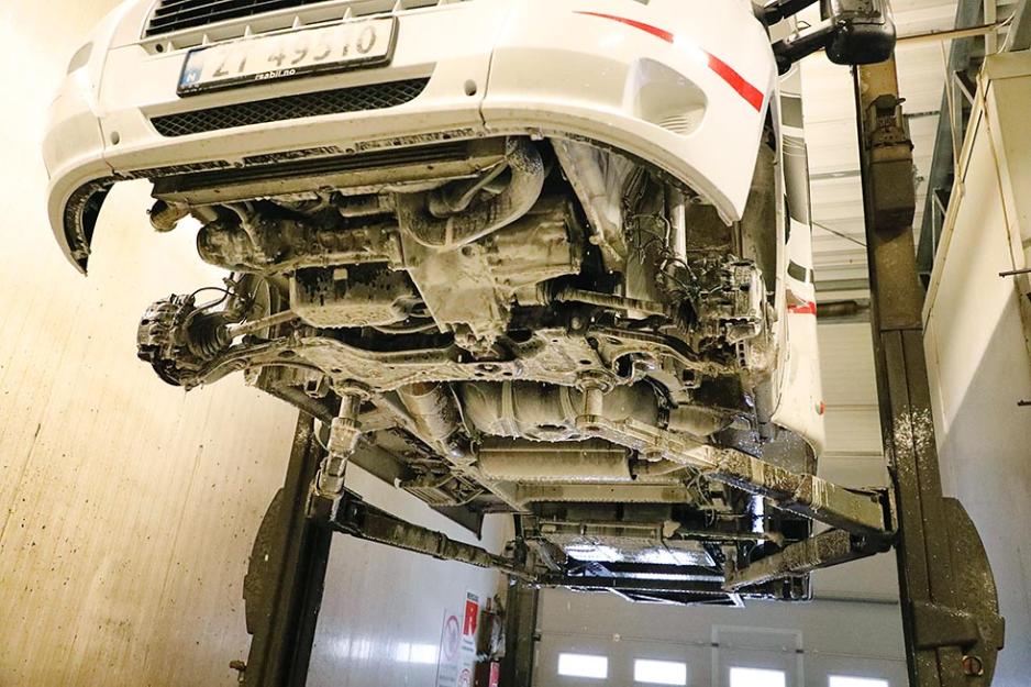 En regntung høstdag triller jeg bobilen inn på verkstedet hos Follo Antirustsenter. Ikke lenge etter svever den i luftig arbeidshøyde på løftebukken. De ansatte inspiserer bilen for å vurdere omfanget av jobben. Selv opplever jeg at det er rust både her og der som det er på høy tid å få gjort noe med.