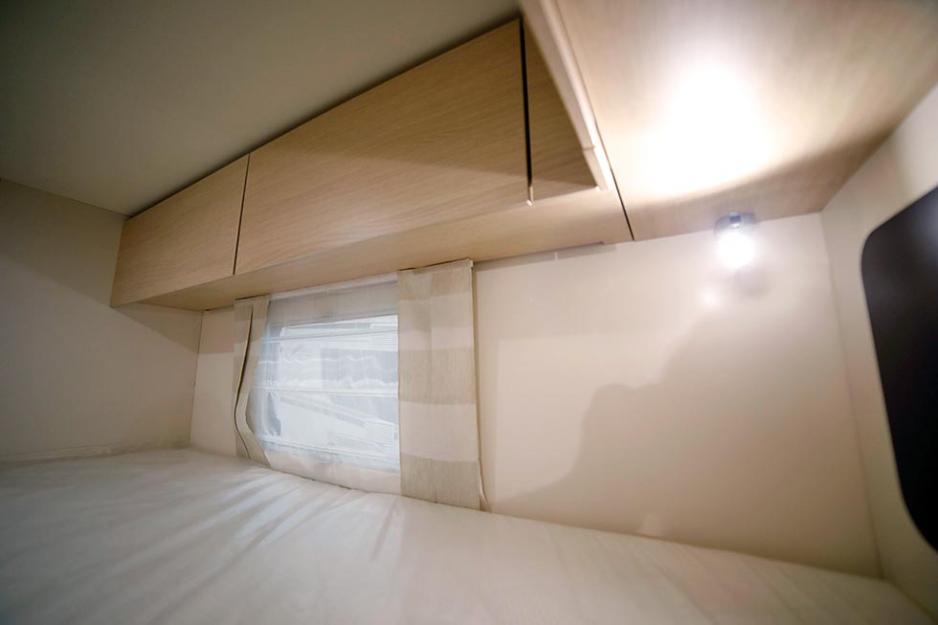 Det er viktig med sirkulasjon i alle bobiler. Og skapene bør ikke være noe unntak. Dette har Autostar tatt på alvor, og bygget overskapene på soverommet tre-fire centimeter ut fra veggen. Det er større lufteåpning enn vi har sett på noen annen bobil. Det er bra for luftsirkulasjonen, men gjør også at skapene tar et par centimeter mer plass enn strengt tatt nødvendig.