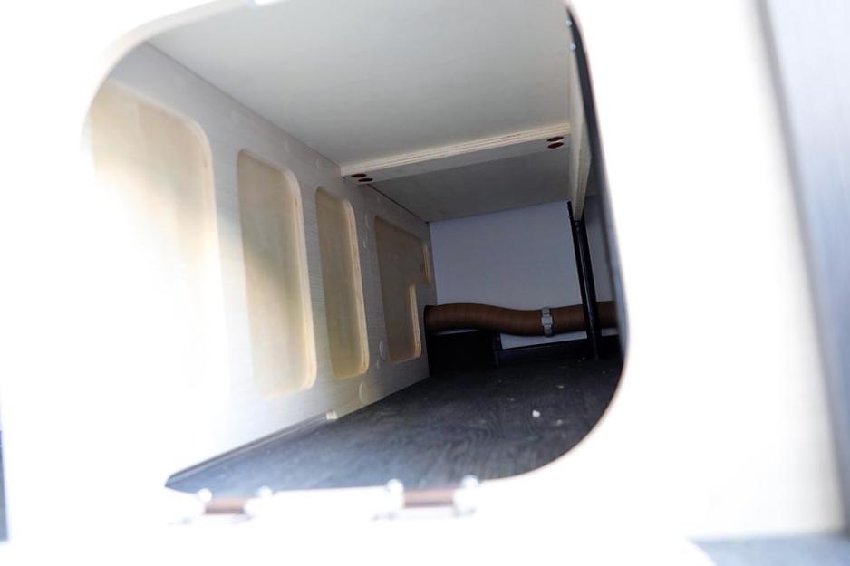 Et grep som er gjort for å holde vekten på vogna nede, er at de fleste av sponplatene i vogna er slanket. Det midterste partiet på platene er frest vekk for å spare vekt. Det er klart de da også får redusert stabilitet. Dette er helt sikkert beregnet av produsenten, men det er nesten så jeg er litt bekymret for hva som skjer om man skulle komme til å sparke hardt til en av platene under senga, for eksempel.