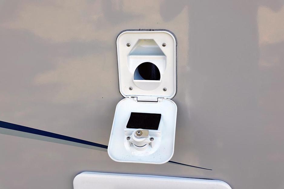 Det er ikke like stor opptur å komme inn på badet. Her er det hvit plast som råder, spesielt når smartbadet er i normalposisjonen hvor vask og toalett er tilgjengelig. Dusjen er langt stiligere med sin svarte bakplate og flotte trerist. For det skal ikke så mye til å løfte designen. Det er i tillegg viktig at luften kan sirkulere fritt bak møbler og skap i en vogn.
