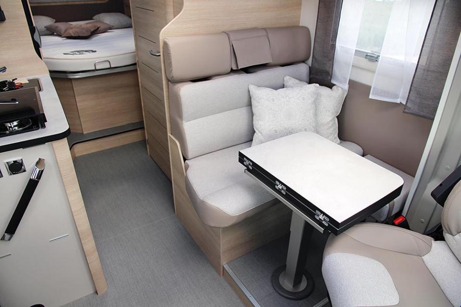 Rapido minner oss gjerne på småtingene som gjør at de skiller seg ut. Er du frøsen av deg eller misliker trekk? En detalj som vintercampere vil sette pris på er at om man har vannbåren varme fra Alde, har bordsøylen på enkelte modeller innlagt varmesløyfe. En nyhet i år er at løsningen er tilpasset Trumas luftvarmeapparat. Det gjelder modeller uten telekopsøyle, forteller Rapido, og nevner konkret modellene 80df, i66 og i96.