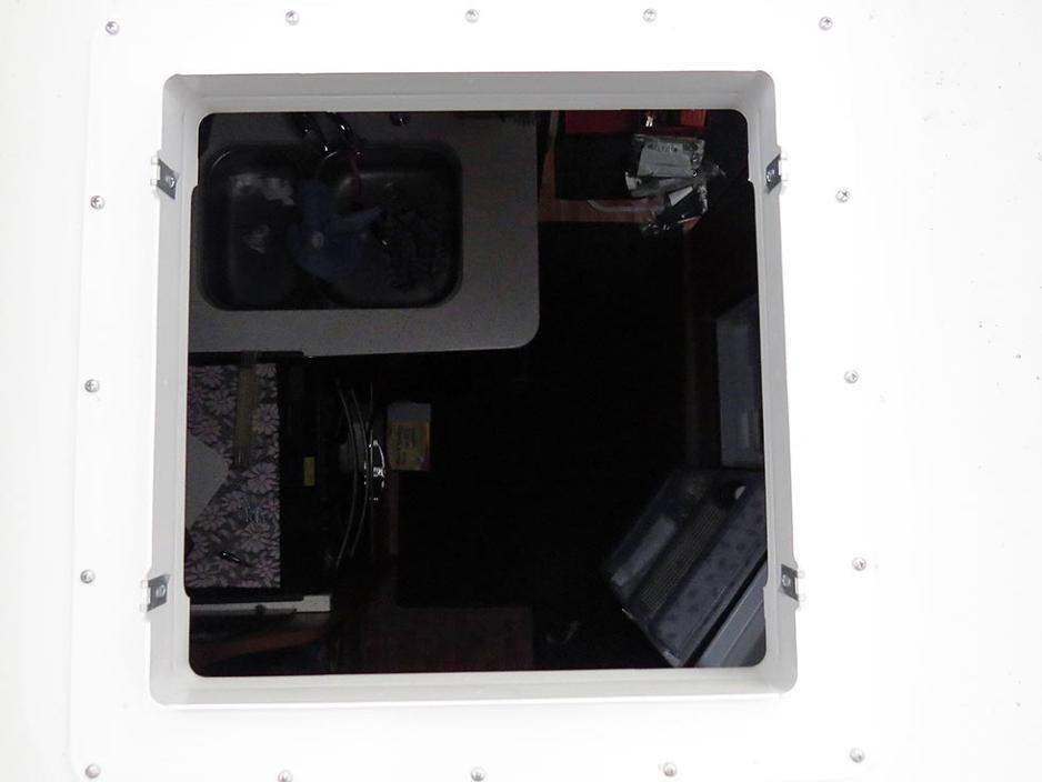 Plasseringen av viften gir seg selv. Den er laget for å kunne erstatte en eksisterende 40x40 cm takluke. Det er langt bedre enn å lage et nytt hull i taket. På min bobil er det en slik takluke i kjøkkenet. Mange vil nok velge å sette bort en slik jobb til fagfolk. Men jeg gjør slike jobber selv. Å demontere takluken er i seg selv en enkel jobb. Men å fjerne tettemassen kan være ganske tidkrevende. Er det kaldt i luften er butyl-gummien unødvendig hard å jobbe med. Prøv da å finne deg et oppvarmet sted innendørs. Et praktisk tips for å fjerne butyl er å bruke en metallstang på en batteridrill. Når du kjører den sakte rundt vil du nærmest kunne «rulle» av den seige massen. Etter at du er ferdig med å fjerne alt, er en skikkelig rengjøring kritisk for at den nye tettemassen skal kunne få godt nok feste.