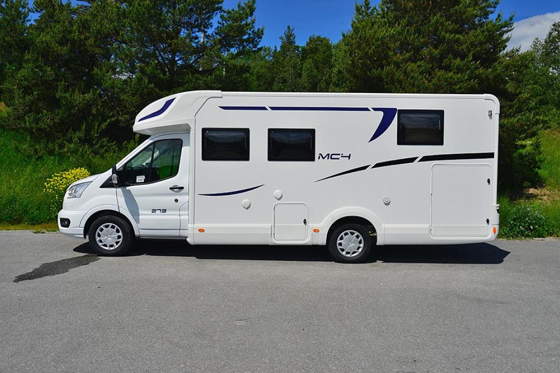 Sist vinter fortalte McLouis at de skulle begynne arbeidet med å bygge Mc4-serien på Ford Transit-chassis. Nå er de leveringsklare, og vi har tatt en testtur i den mest populære modellen. Innstegsbilen Mc4 273 med langsgående enkeltsenger, stor garasje og senkeseng over sittegruppen. For to år siden testet vi samme modellen på Fiat-chassis, og var positive den gang. Vi er nysgjerrige på om bytte av chassis påvirket modellen.