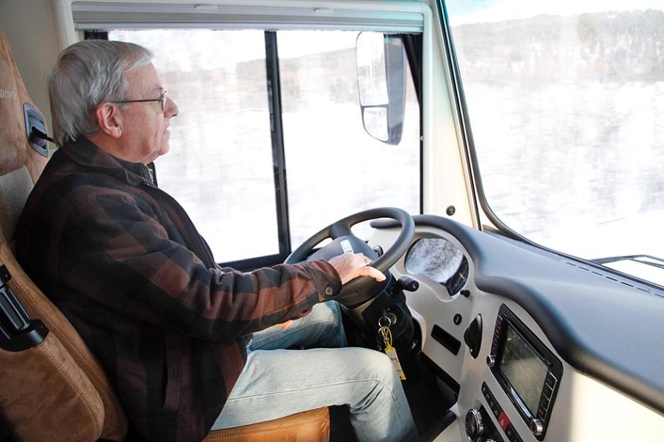 Et høyt chassis med dobbelt gulv fordrer noen trinn for innstigning. Trinnhøyden inn som begynner med et elektrisk stigtrinn, er 21/ 31/ 24 og 22 cm, som er bra for en så høy bil. I førerhuset har sidevinduene dobbelt glass og den elektriske gardinen for frontvinduet tetter helt i nederste posisjon. Sammen med plissegardinene på sidevinduene hjelper dette bra i sterk kulde.