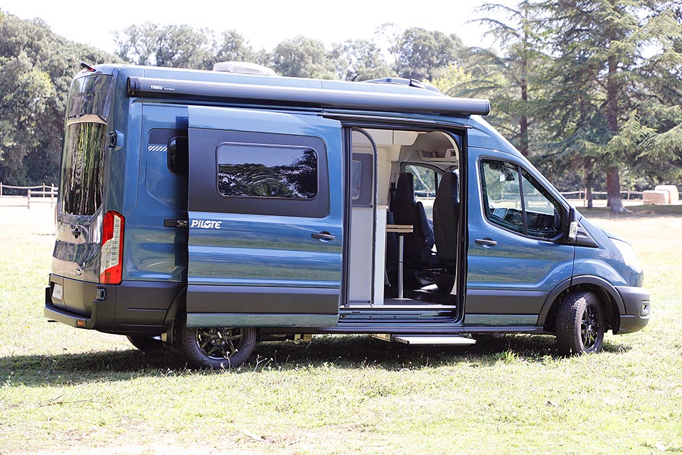 Vurderer du denne bobilen kan du slutte å vurdere hvor mye klær du skal ha med deg på tur. Du tar bare med alt du har! For 656G har en smart garderobeløsning og mye lagringsplass bak i bilen. Og det på bekostning av den tradisjonelle sengen. I stedet er hovedsengen i denne bilen en senkeseng i front. Det er plass til sju personer rundt det romslige bordet som kan foldes til halv bredde. Prisen vil starte på drøye 1,2 millioner, antyder Pilote.