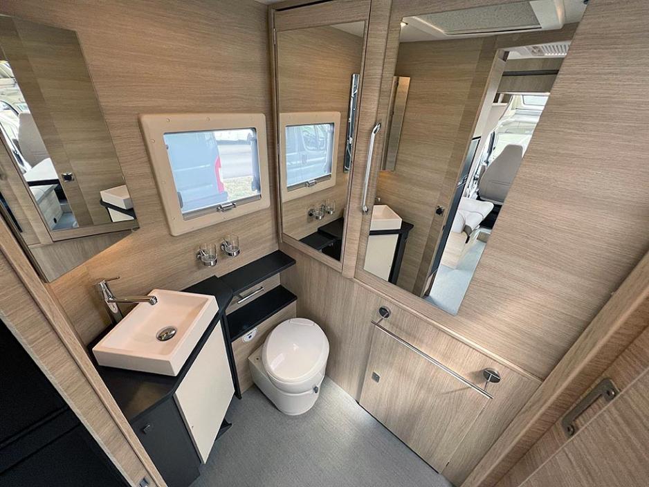 Det er flere ting som gjør at Rapido 606F skiller seg ut, men hovedgrunnen er at produsenten har droppet fast seng. Det gjør at man naturlig nok har fått mye ekstra plass til å leke seg på, i den 669 cm lange bobilen. Den ekstra plassen har først og fremst kommet badet til gode, i tillegg til en imponerende garderobeløsning.