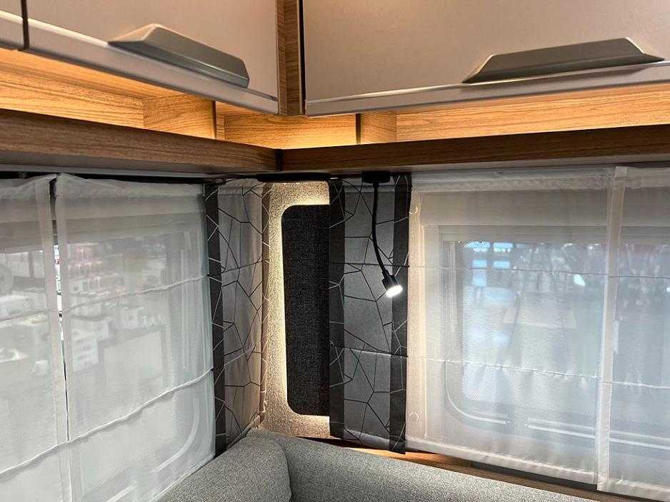 Interiøret er lyst og trivelig. Knaus har tatt noen grep hvor de i soveromsdelen har kledd noen plater med tekstiler. Disse er plassert i området ved sengen, og sikrer god luftsirkulasjon på baksiden. Det er viktig for å unngå kondens og å ha et godt inneklima.