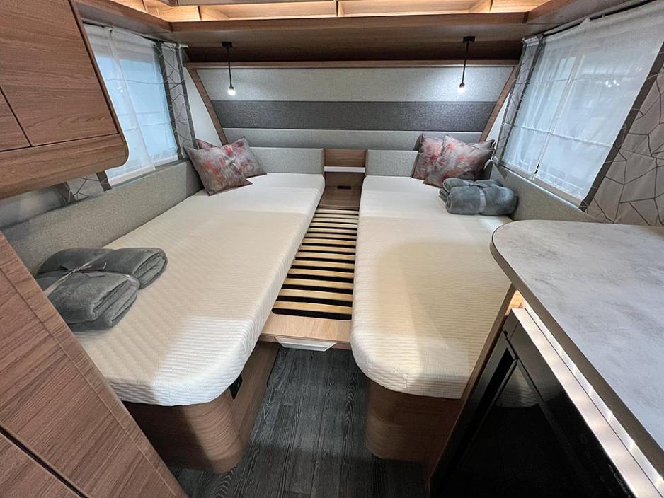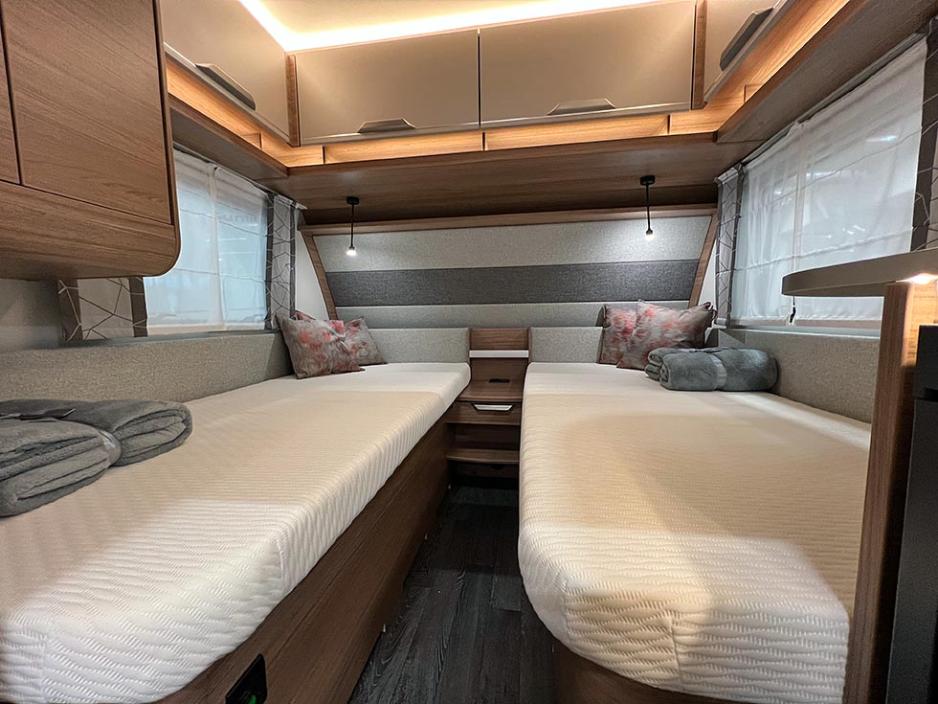 Denne muligheten gjør at det er lett å se for seg at et par som kjøper vognen, har potensiale for å huse minst et lite barn i hovedsengen. I tillegg er det raskt å re opp sittegruppen til å bli soveplass til to. Så plutselig kan vogna forandre seg fra å være en aldri så liten egotripp for to, til å bli en familievogn for inntil fem personer!