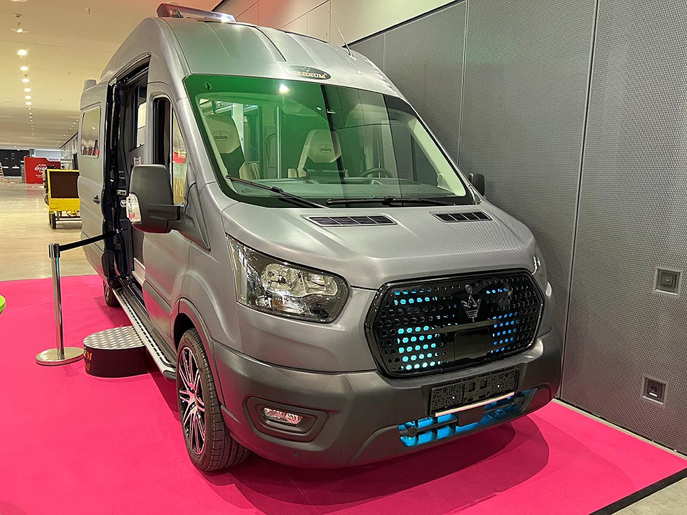 Vi så den nye elbybobilen i et hjørne på CMT-messen i Stuttgart i januar. Rekkevidden på denne er oppgitt til opp mot 317 km. Mer info finner du på: iridium-wohnmobile.de
